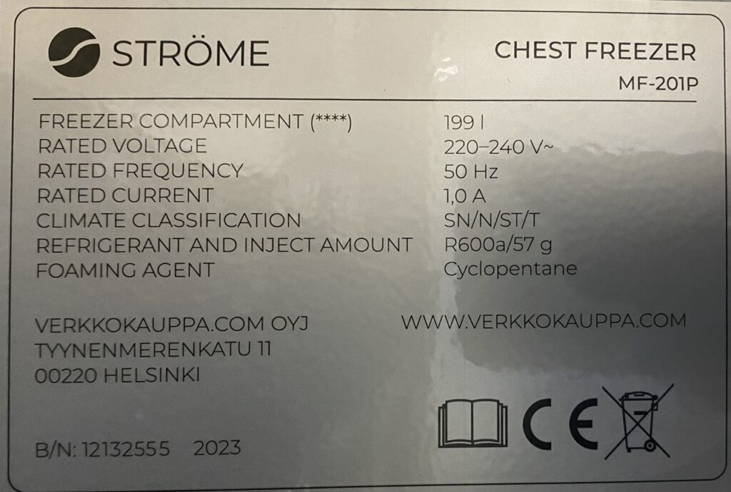 Arkkupakastimessa puolestaan tyyppikilpi on yleensä laitteen ulkopuolella joko sivu- tai takaseinässä tai laitteen sisäpuolella kannen takaosassa.