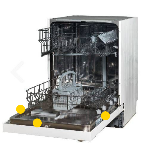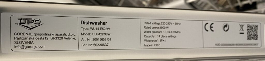 Astianpesukoneessa tyyppikilpi on tyypillisesti joko luukun yläreunassa tai jommalla kummalla sivulla.