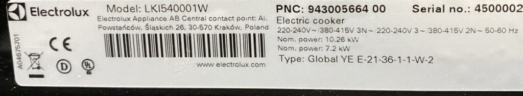 Liedessä ja uunissa tyyppikilpi löytyy tyypillisesti uunin luukun reunasta, rungosta luukun alta, uunin alla olevasta laatikosta tai lieden/uunin sivusta.