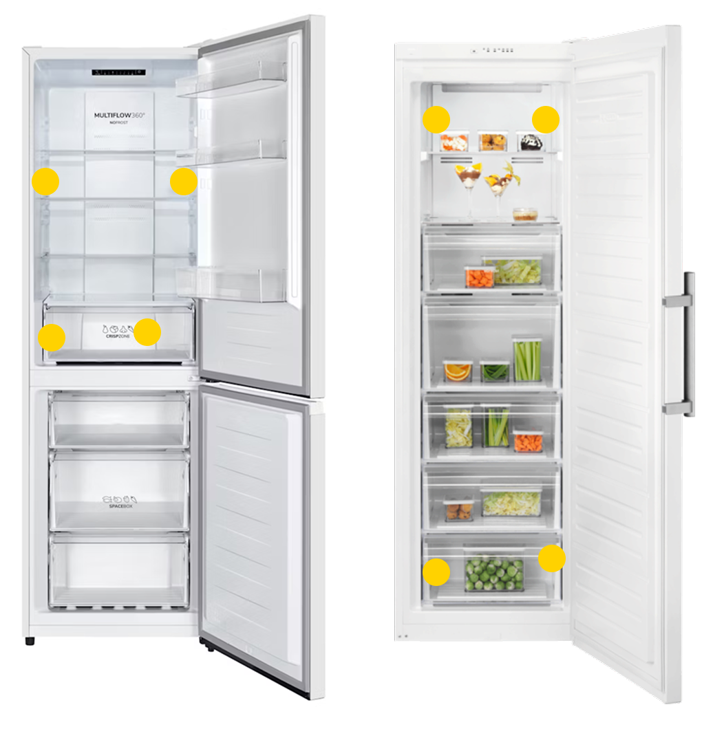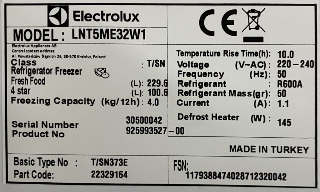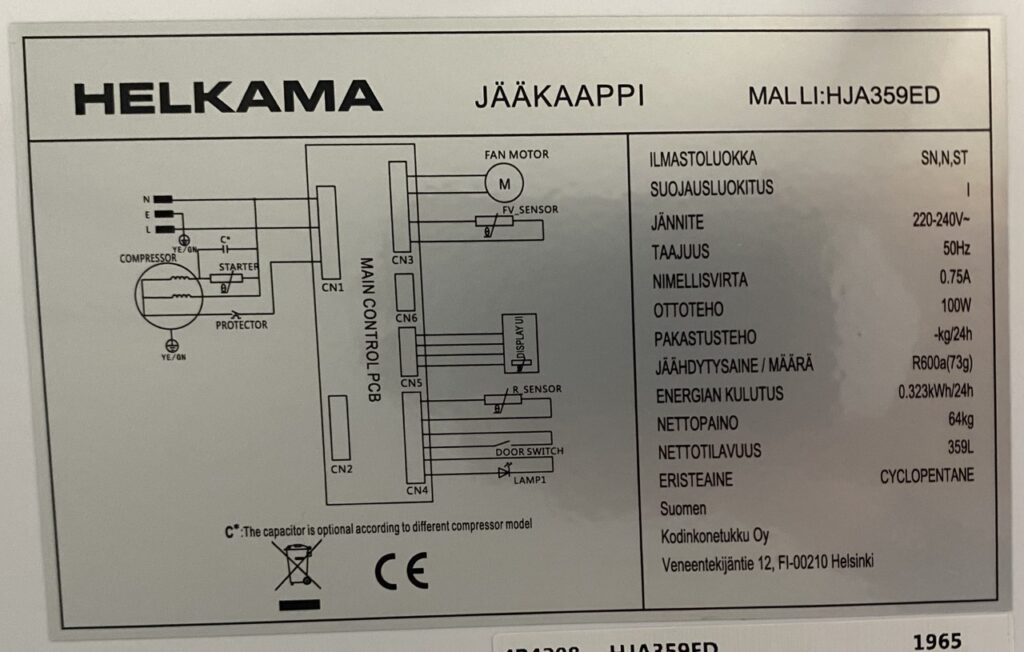Jääkaapissa tai jääkaappipakastimessa tyyppikilpi on tyypillisesti vihanneslaatikon takana tai kaapin takaseinässä tai sivuseinässä jommalla kummalla puolella.