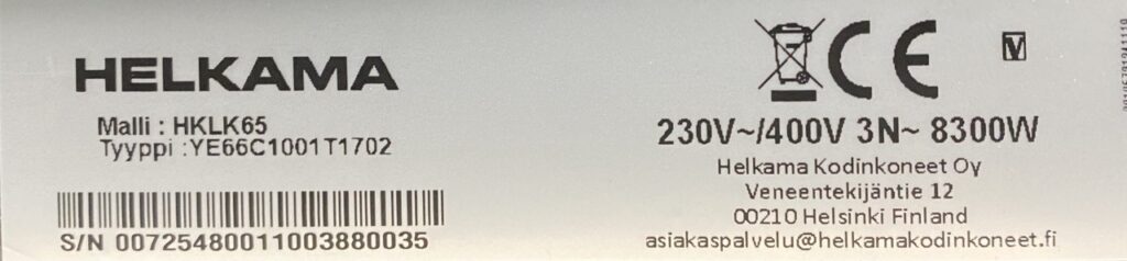 Jos et löydä tyyppikilpeä tai sinulla on vaikeuksia ottaa siitä kuva, voit soittaa meille numeroon 09 8567 7101 (ark 8-16), niin me autamme.